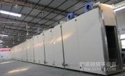 箱體內膽尺寸:寬0.9米*高2.9米*長40米; 箱體共分為10段,每段長度=4米,其中預熱2段,烘干4段,程序降溫3段,強制冷卻1段;